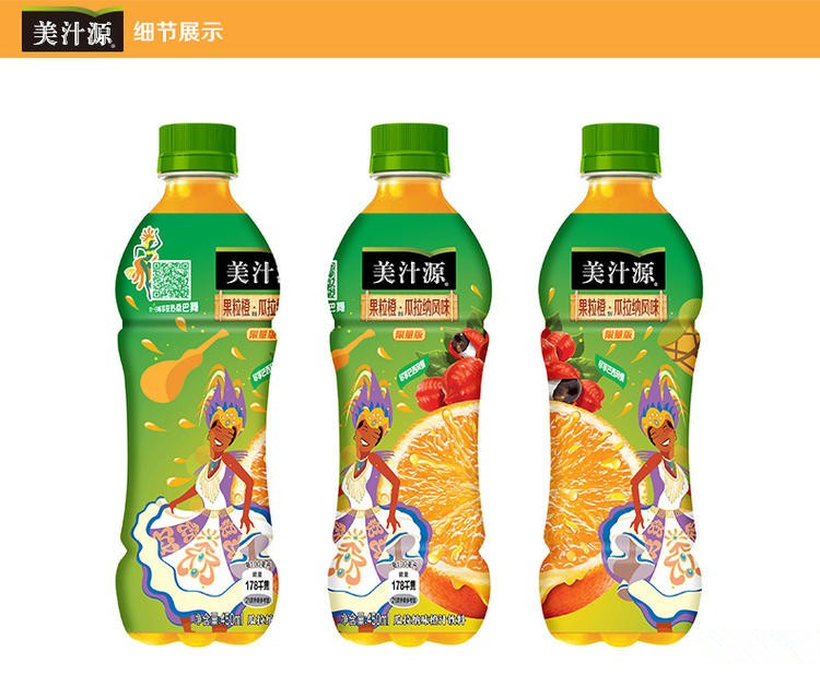 “淳萃”跟美汁源果粒系列比,除了瓶身和視覺有變化之外,值得注意的是“淳萃”的果汁含量比原來提高了許多。果粒橙和爽粒葡萄的果汁含量在 10% 左右,現(xiàn)在的“淳萃”檸檬味含有 30%復(fù)合果汁;橙的果汁含量達(dá)到了 40%。